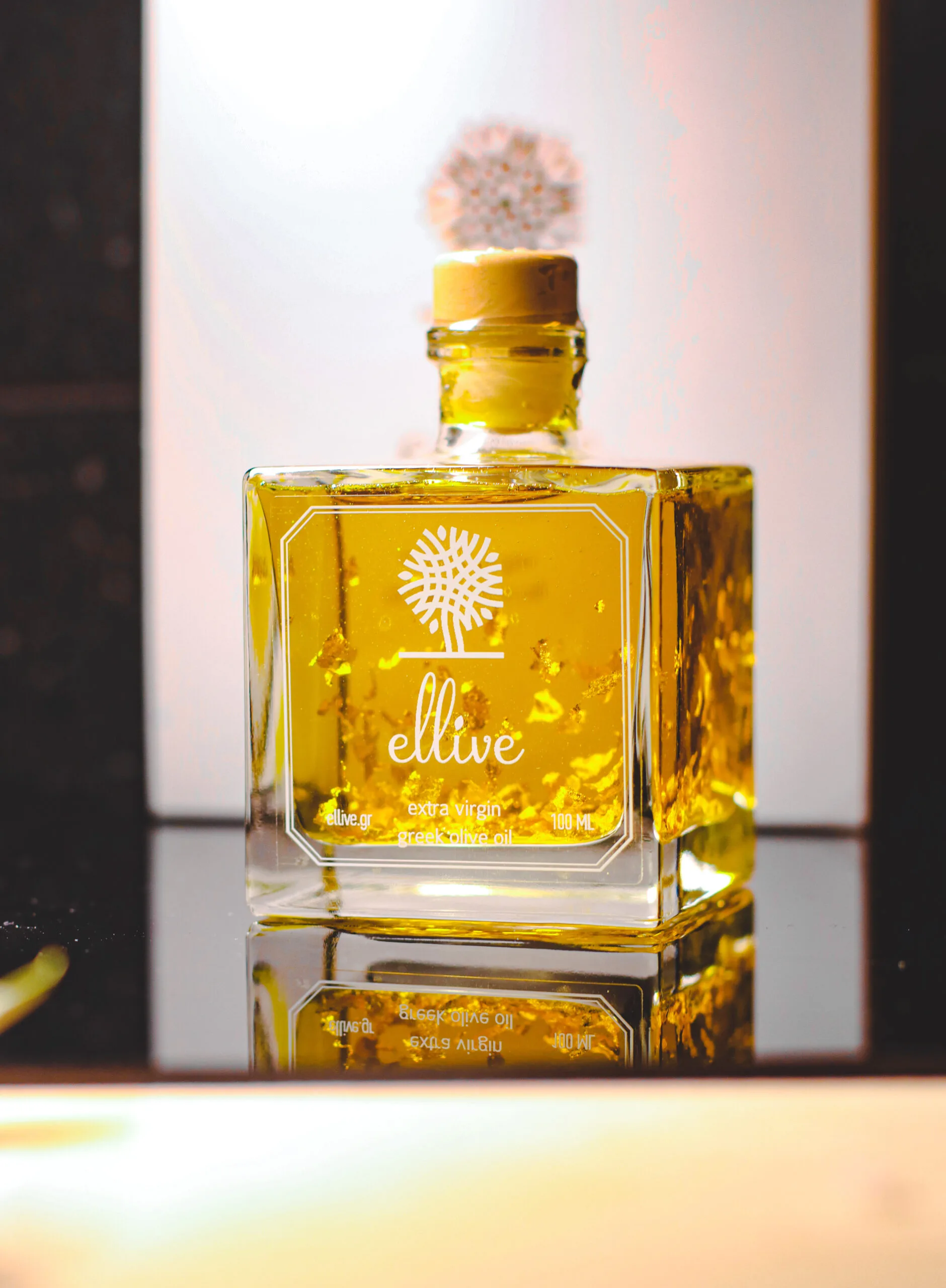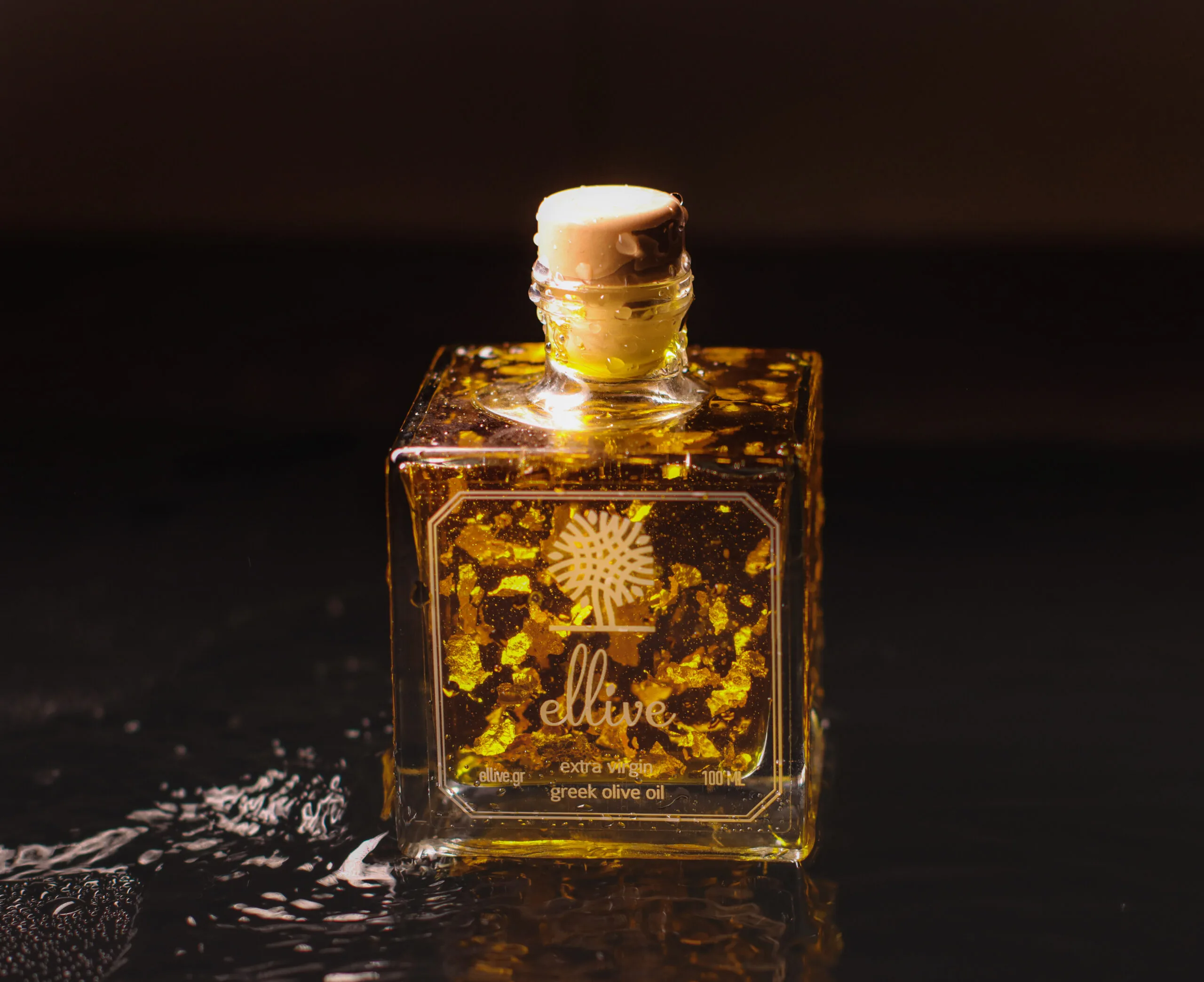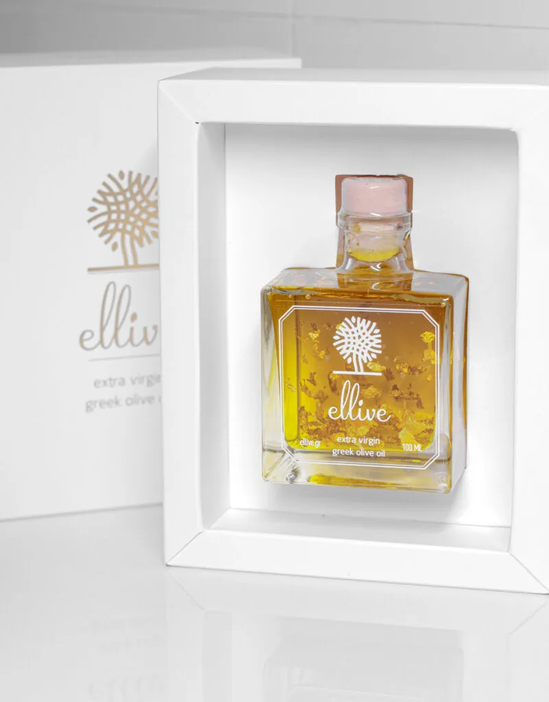 Γευτείτε το πλούσιο σε θρεπτικά συστατικά έξτρα παρθένο ελαιόλαδο της ELLIVE εμπλουτισμένο με 10mg νιφάδες βρώσιμου χρυσού 23 καρατίων και κάντε ένα πολύτιμο δώρο στον οργανισμό σας.